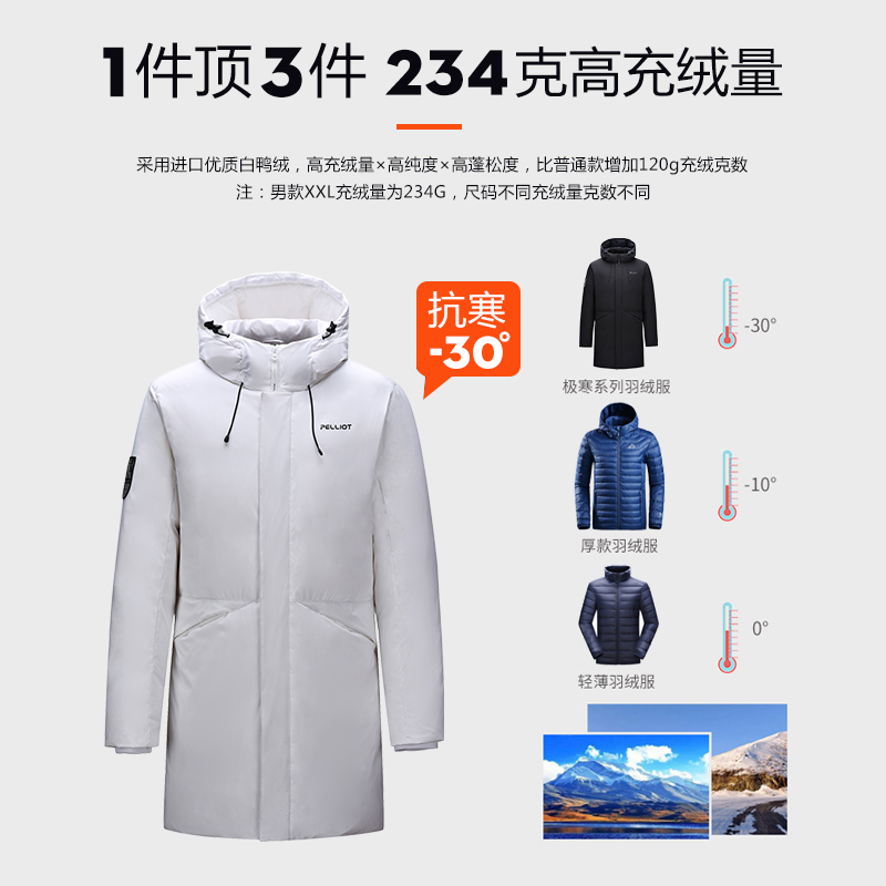 Boxi He outdoor down jacket men's medium and long winter thickened breathable white duck down windproof and cold mountaineering down jacket