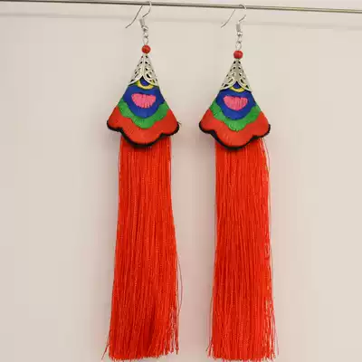 Ethnic Embroidered Tassel earrings Yunnan retro handmade trumpet flower tassel earrings features long version ethnic