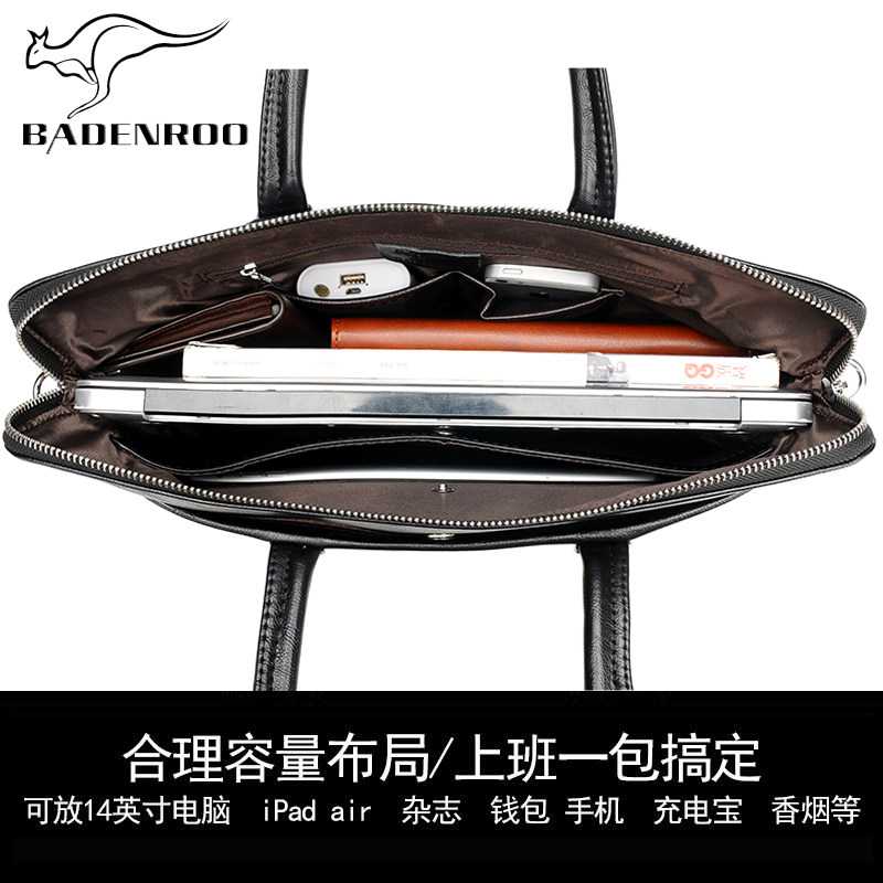 Biden Kangaroo Men Bag leather briefcase Men's business Bull Leather Handbag single shoulderhand with diagonal satchel men's bag