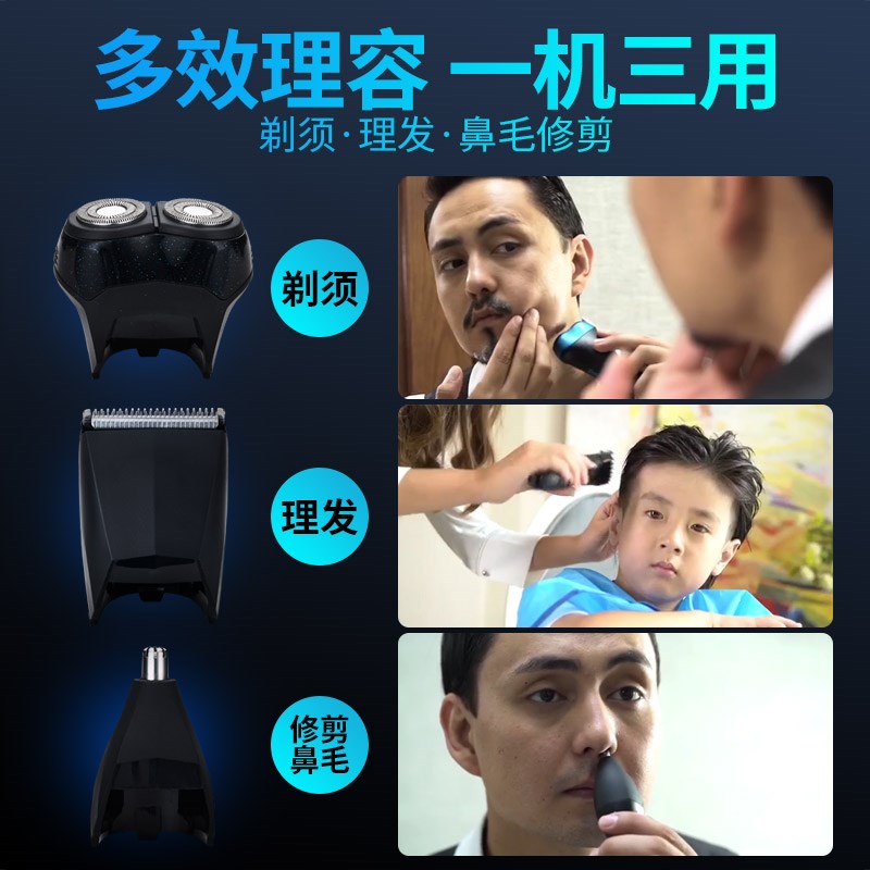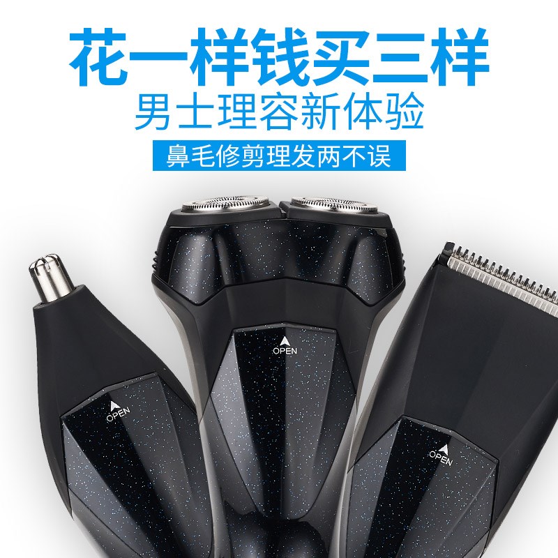 Razor rechargeable three-in-one multi-function electric shaver Ricon nose hair trimmer waterproof accessories