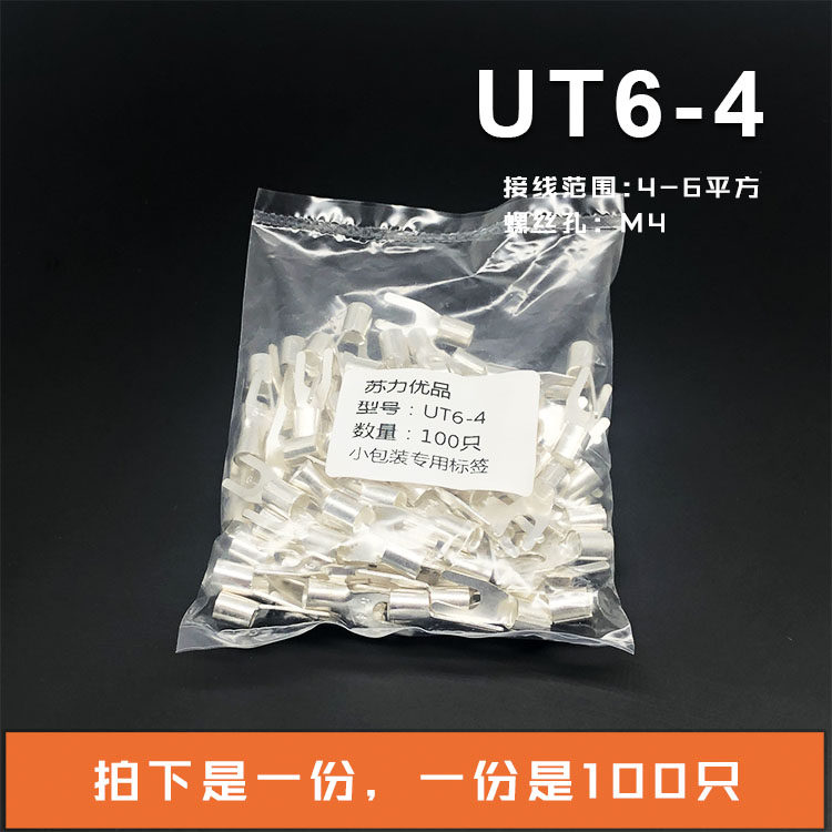UT6-4 cold pressed wiring terminal U shape Y shape fork naked end head copper wire nose silver plated wiring ear 100 only
