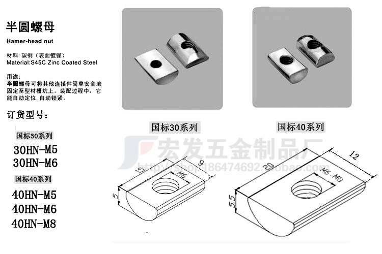 Semi-circle nut 3030 4040 national standard aluminum extrusion material arc nut after the national standard nut long nut