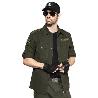 Outdoor mountaineering army green men's long-sleeved tactical shirt top spring and autumn army fans pure cotton breathable tooling shirt jacket