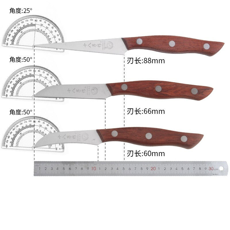 Eighteen sons cook carving knife Stainless steel sharp three-piece set of knives Food modeling special knife Wooden handle carving