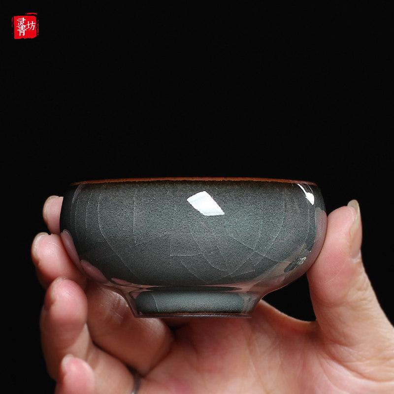 Ge kiln tea cup single cup tea cup celadon iron tire handmade ice-cracked master cup ceramic kung fu tea set Pu'er tea cup