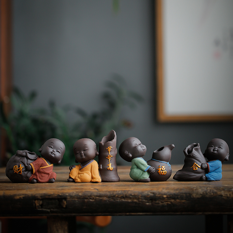 Tea pet can raise cute little monk Purple Sand tea pet ornaments Mini flowers Creative hydroponic flower arrangement decoration tea play