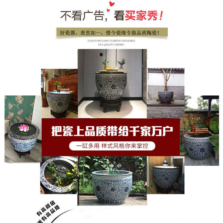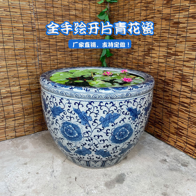 Planting tree flower pot ceramic fish tank 60 large large lotus water lily pot tank 80 blue and white porcelain old-fashioned water tank courtyard 50