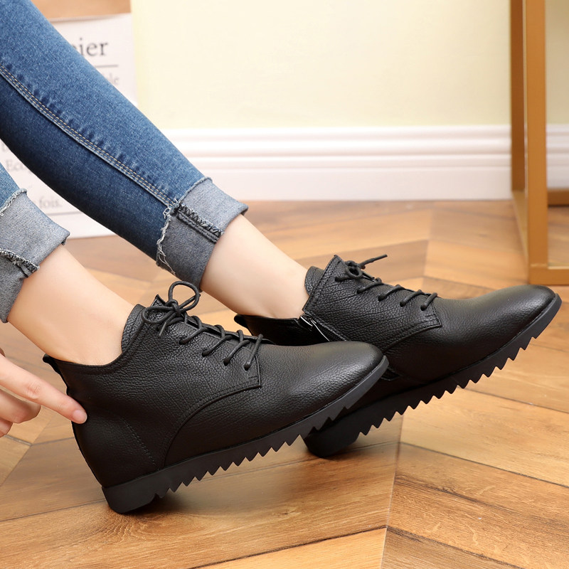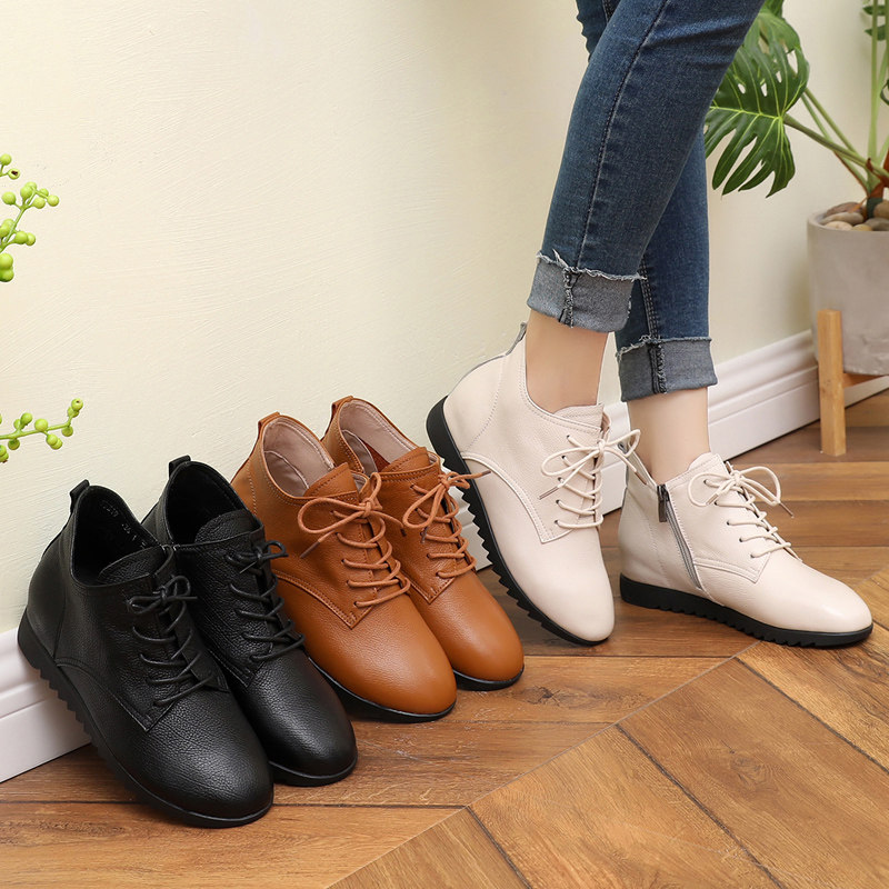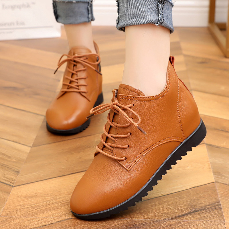 Casual Leather Shoes Women 2020 New 100 Hitch Spring Autumn Season Single Shoes Inner Heightening Slopes Heel High Cylinder Genuine Leather Flat Girl Shoes