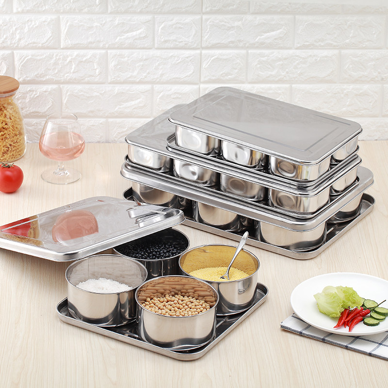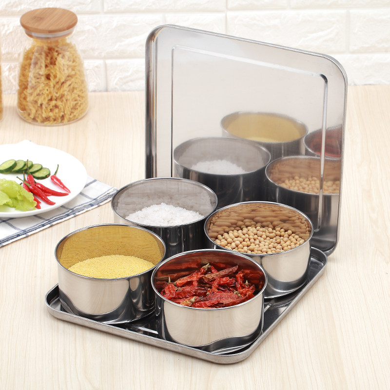 Square seasoning box set combination household stainless steel seasoning tank Condiment condiment storage box Kitchen oil salt tank