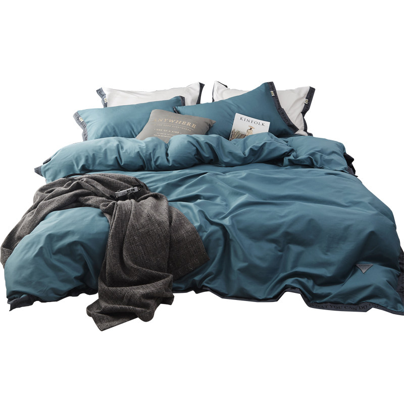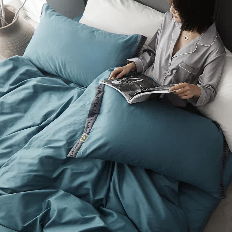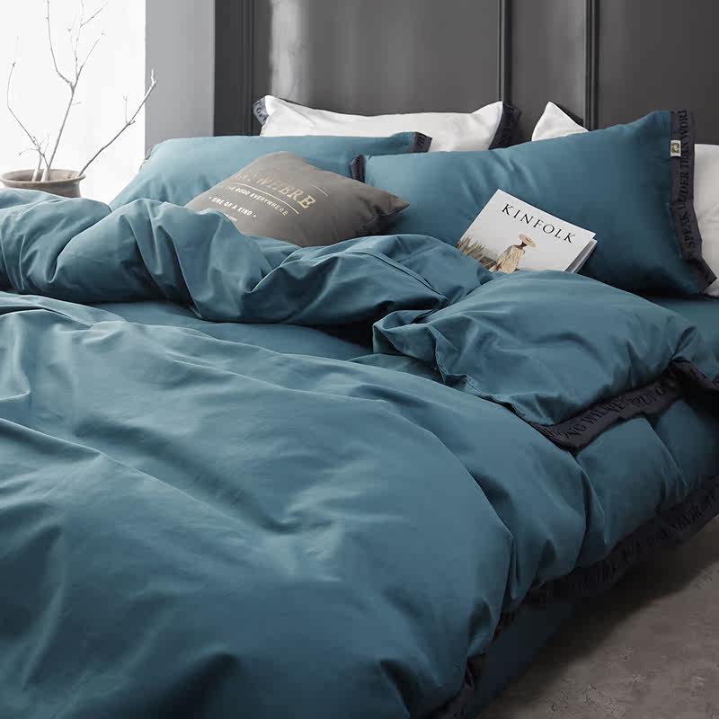 60 Nordic minimalist lukewarm pure colour webbing wind all-cotton single double bed light lavish without fade three or four sets of bed goods