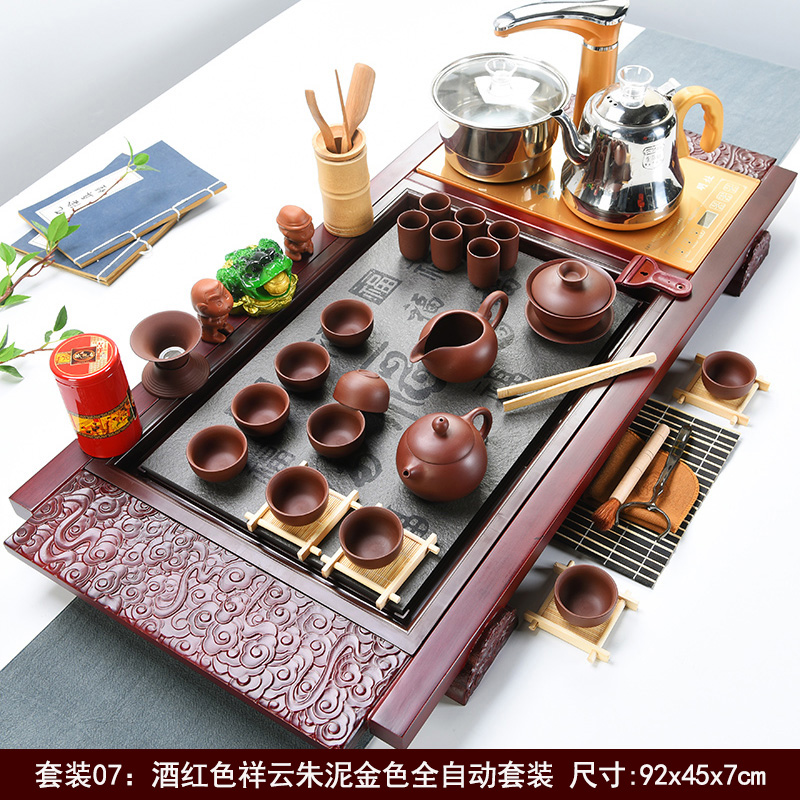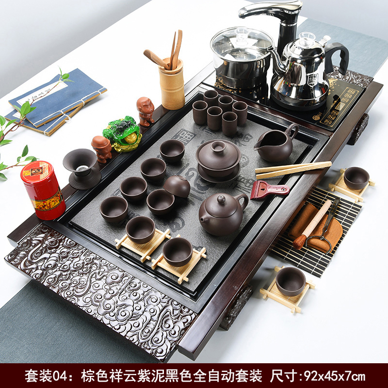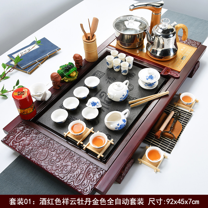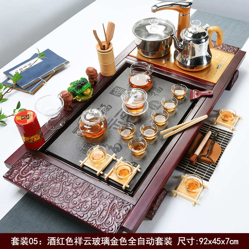 Kung fu tea set household simple automatic four-in-one electromagnetic oven solid wood tea plate tea table tea table