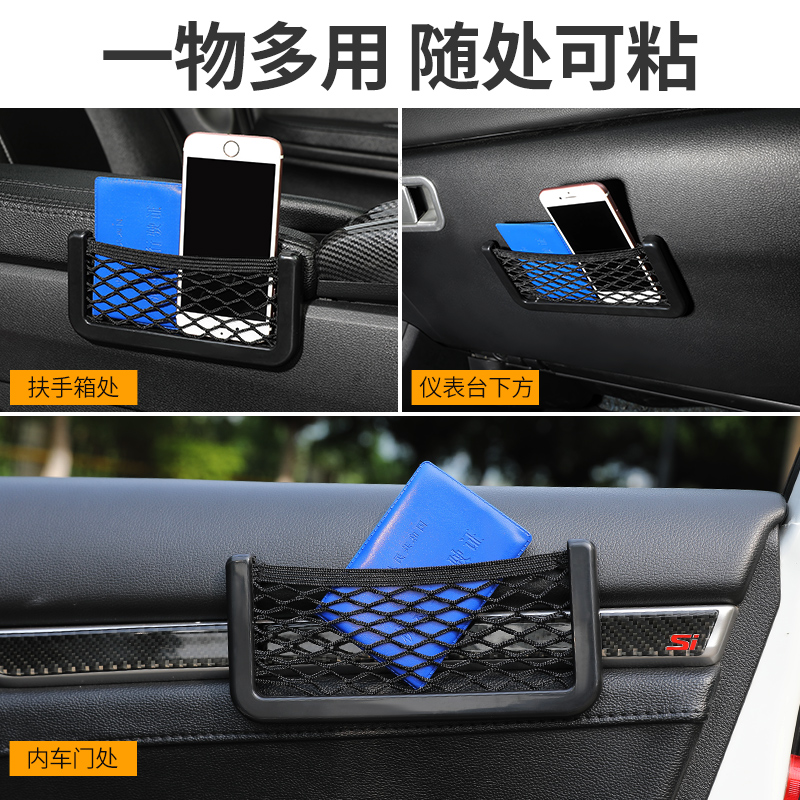 Car storage supplies Multi-function storage box pasted large mobile phone bag hanging bag Car interior storage net pocket