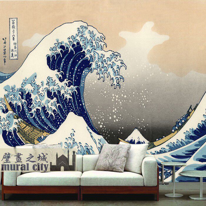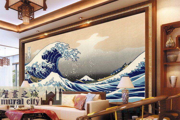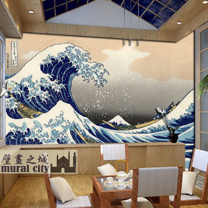 Japanese style Japanese style wallpaper Japanese style Japanese style wall stickers Ukiyo-e murals Japanese food dining room Kanagawa Surf