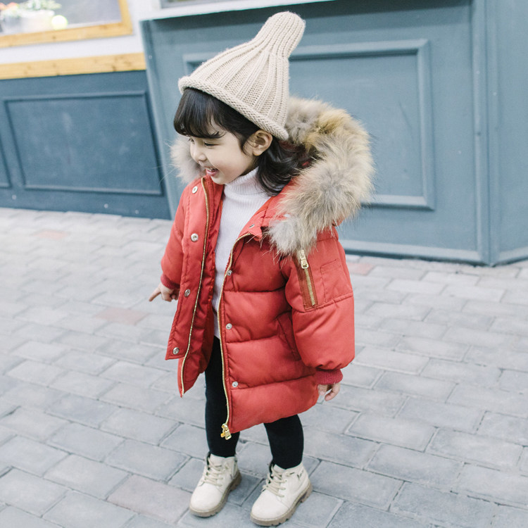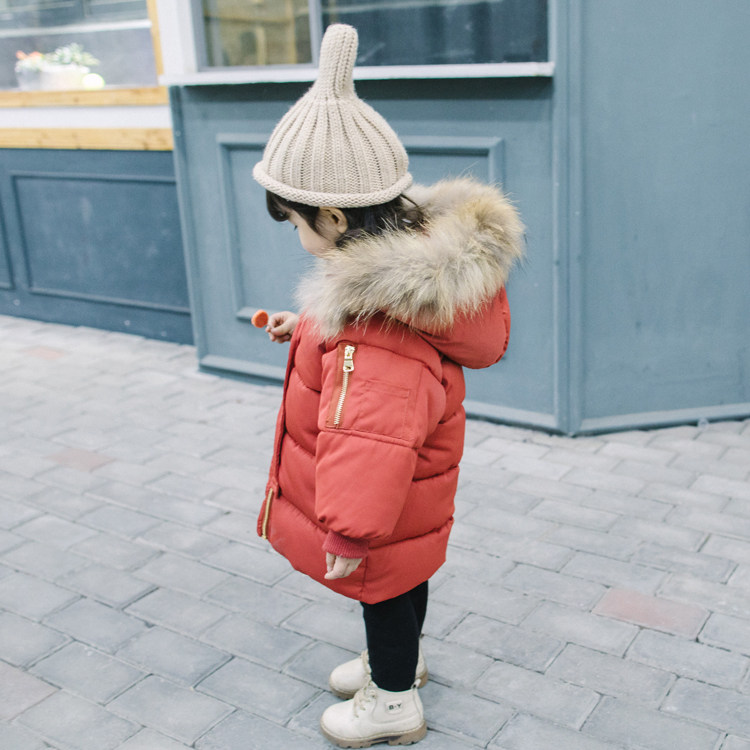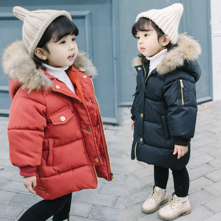 2021 new boy girl thickening children's suit winter dress mid-length version down cotton clothes jacket female baby