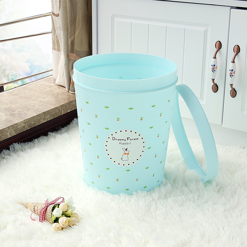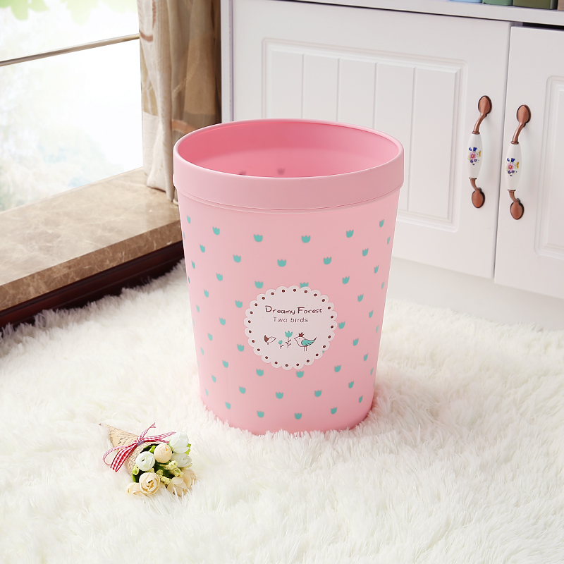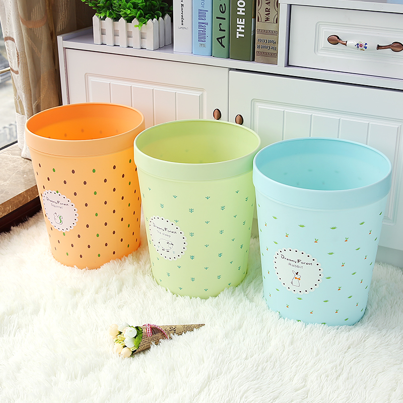 Home Trash Can Round Office Wastebasket No Cover Plastic Cloth Basket Little Fresh pressure ring Kitchen Trash Cans