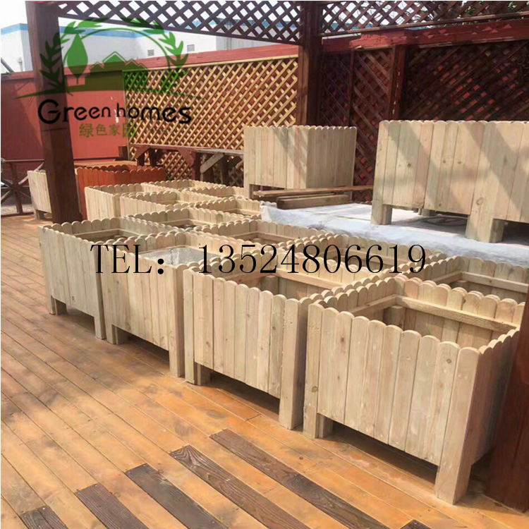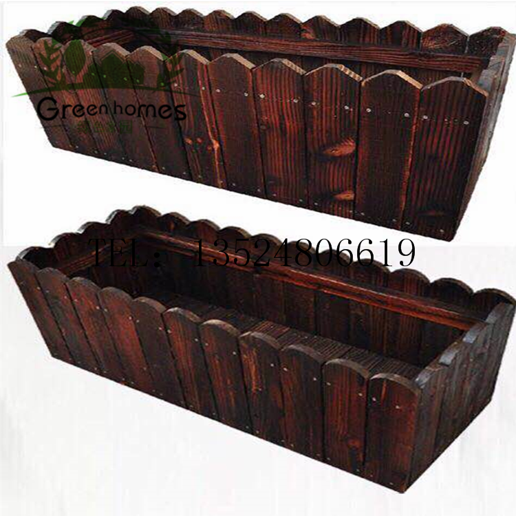 Custom flower box anti-corrosion wood carbonized wood flower trough outdoor grid planting box wooden flower pot courtyard flower stand climbing vine