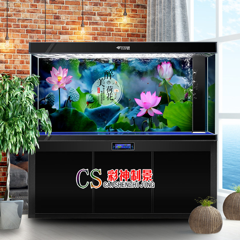 Set to make fish tank outer side hanging painting sticker high-definition lotus flower brocade carp aquarium build-up decoration color god-made scenery