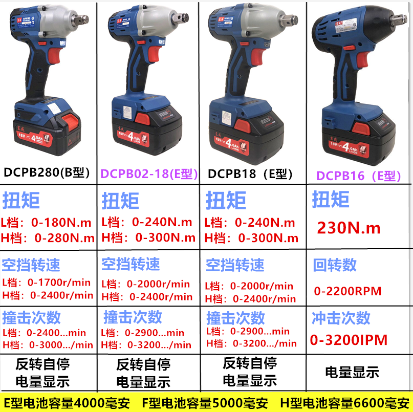 Brushless DCPB280B Dual Electric One Charge 4.0Ah Standard Brushless DCPB280B Dual Electric One Charge 4.0Ah Package Brushless DCPB02-18E Dual Electric One Charge 4.0Ah Brushless DCPB02-18H Dual Electric One Charge 6.0Ah Brushless DCPB18F Double Electric One Charge 5.0Ah