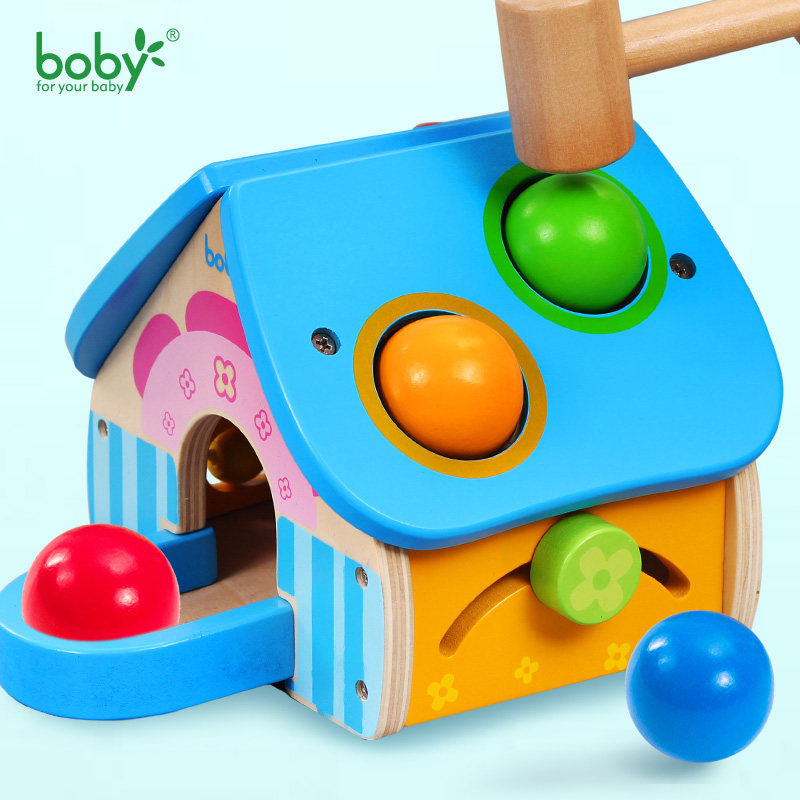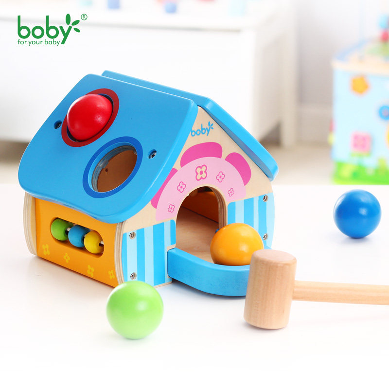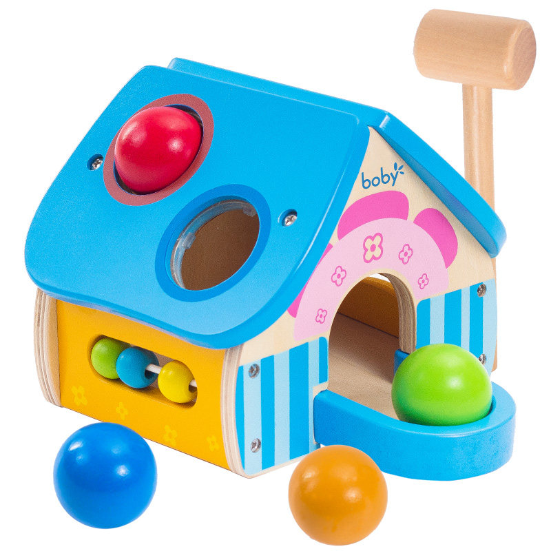 Wooden hammer house toddler knocking table hitting pile table knocking table 2-3-4 year old children's early education teaching aids educational toys