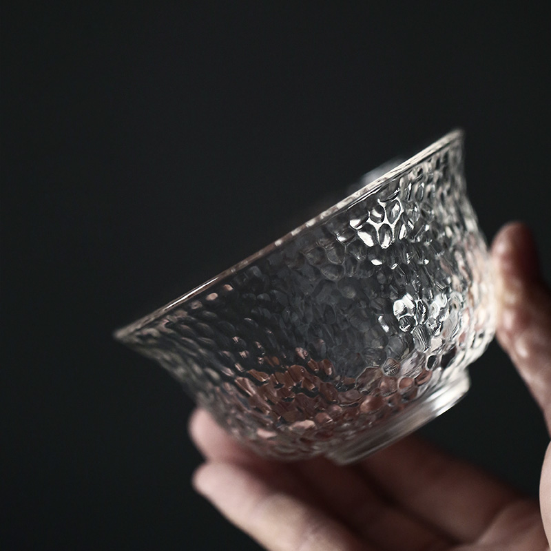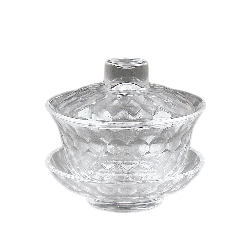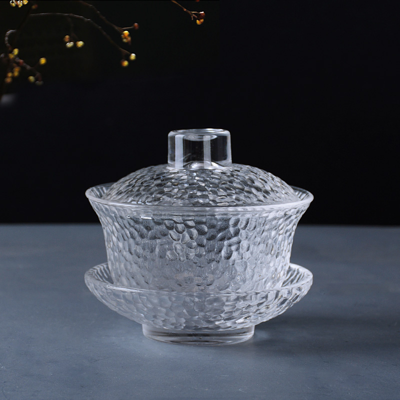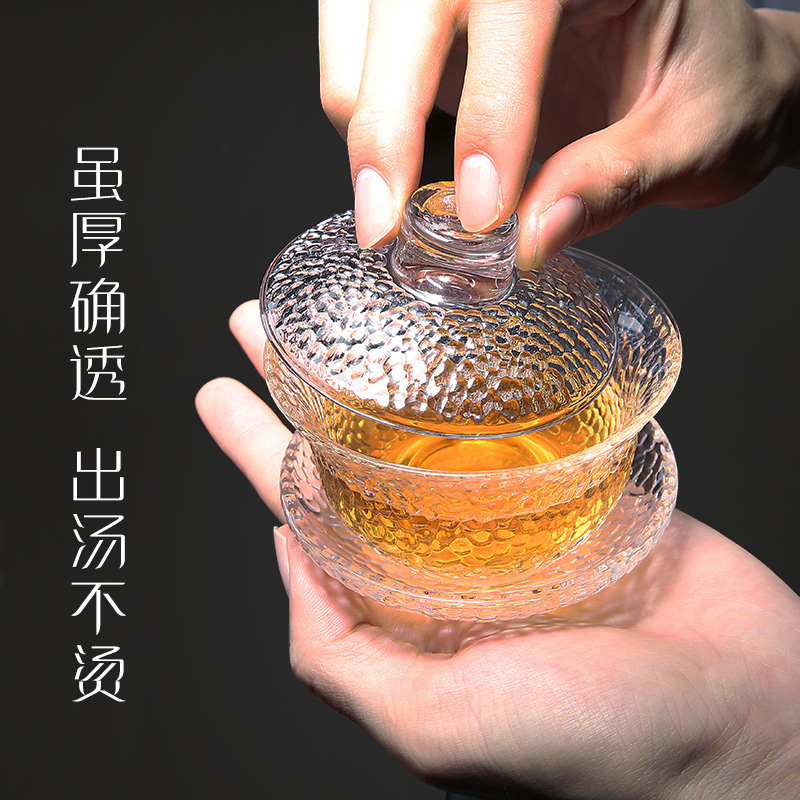 Glass cover bowl teacup thickened heat-resistant kung fu tea set three talent bowl household anti-scalding tea bowl hammer pattern cup
