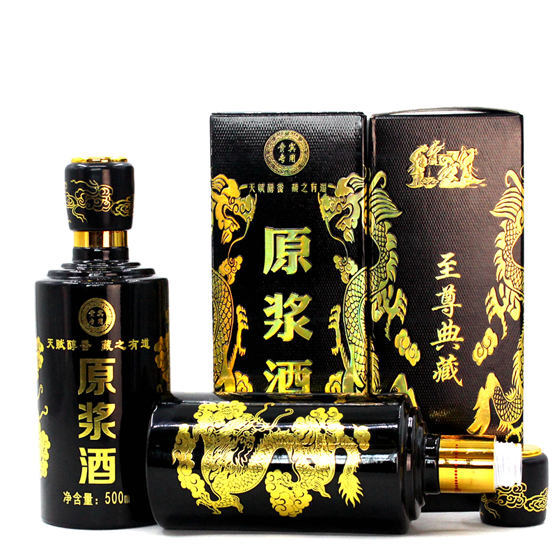 Black Bronzing Gold Double Dragon Original Pulp Bottle Black Waist Drum Cover Black Dragon Gold Card Wine Box Black Dragon Handbag Black Dragon Outer Case Black Dragon 6 Bottles Waist Drum Cover Full Box Carry-on Color Box