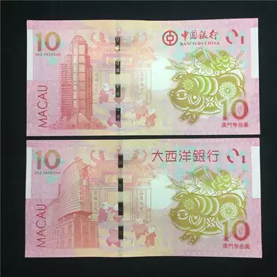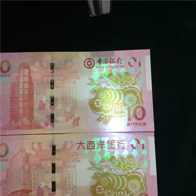 2019 Macau Zodiac Year of the Pig Commemorative Banknote End 4 with the 12 Zodiac Commemorative Banknote 10 Yuan Fidelity