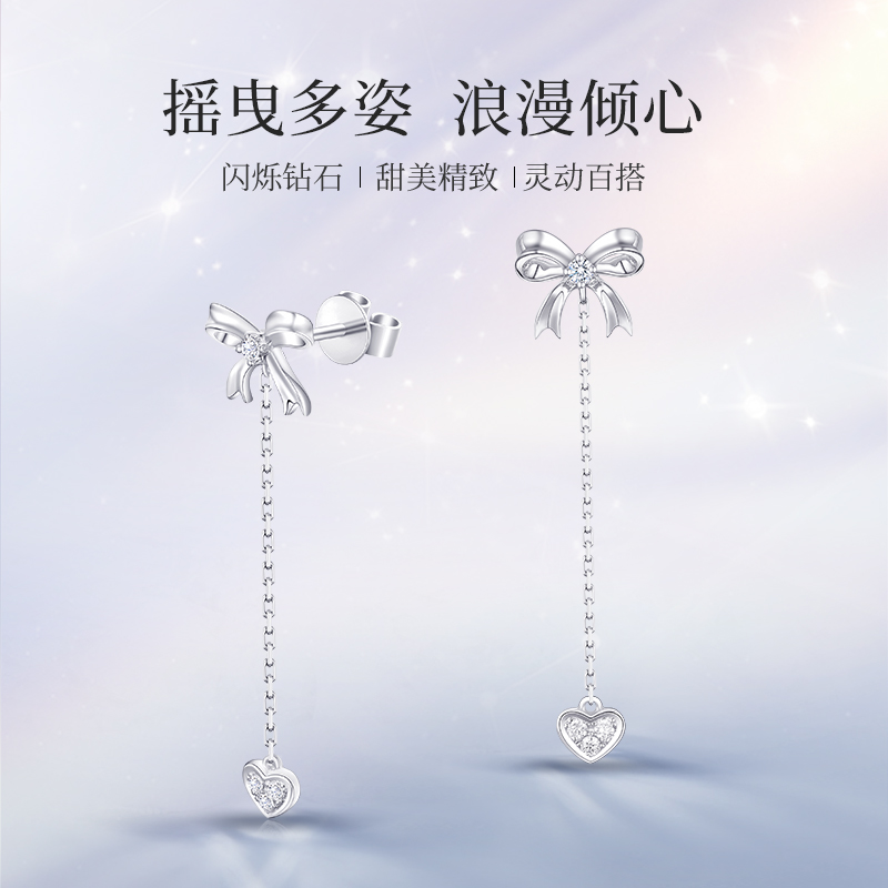CRD Ktoux Platinum Diamond Earnail Female Real Diamond Butterfly Knot Ear Necklace with Courtesy Ear Pendant