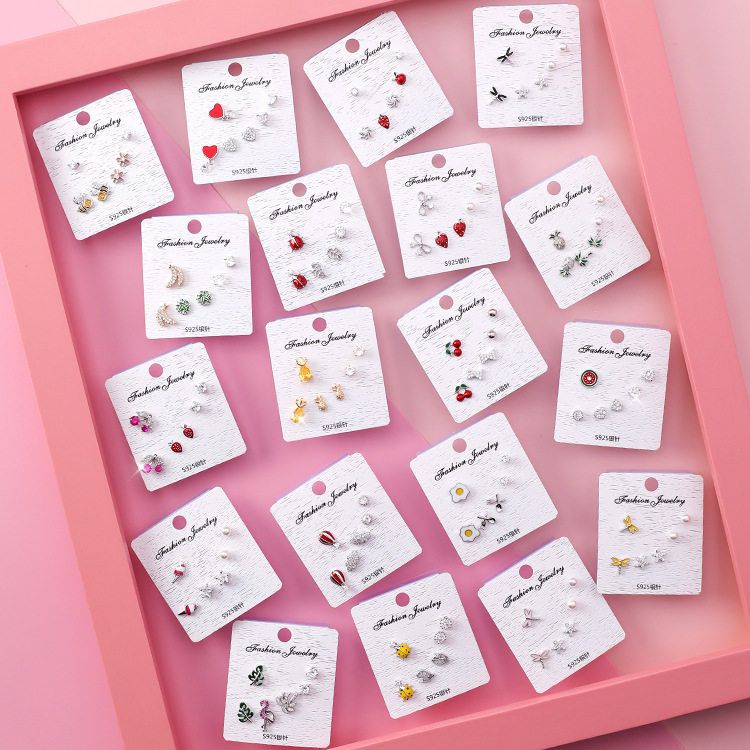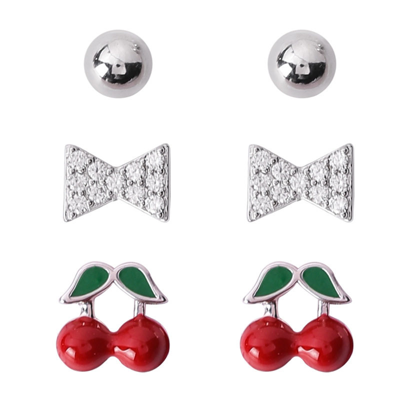 Ye Bo 925 silver needle 6-piece combination ear needle set Multi-ear holes small mini ear bone nails fruit earrings jewelry
