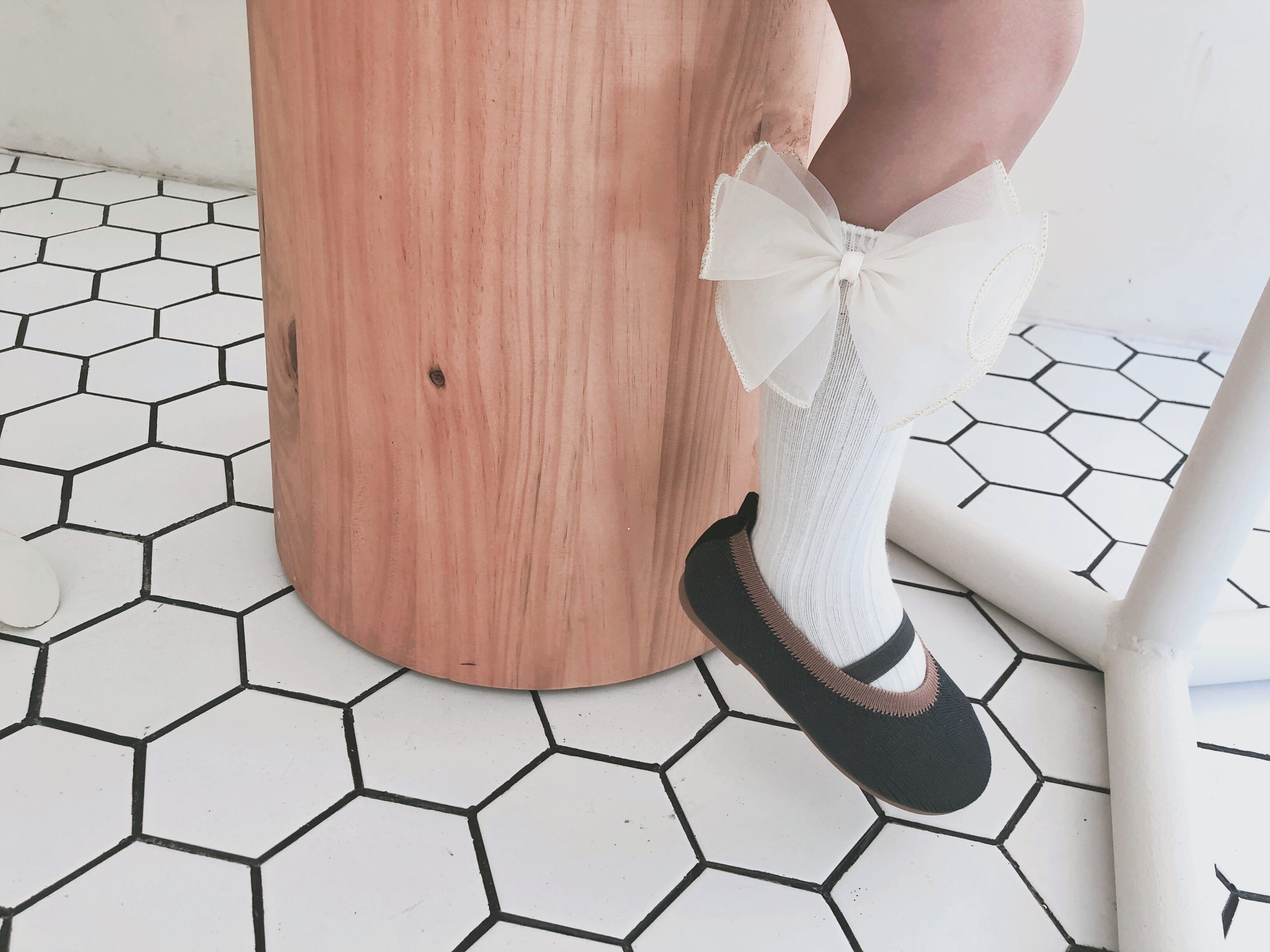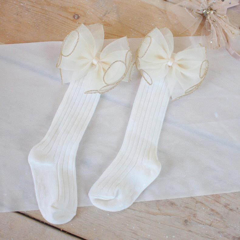 2021 autumn and winter new Korean girls bow organza chiffon ball pit strip medium tube socks sweet fairy