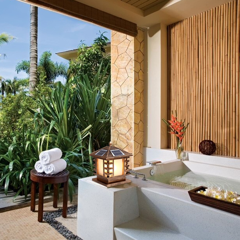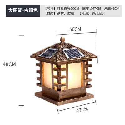 Solar garden lamp Chinese antique wall lamp city electricity dual-use post lamp connected to electricity yard lighting outdoor waterproof