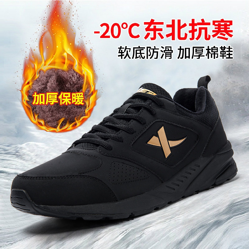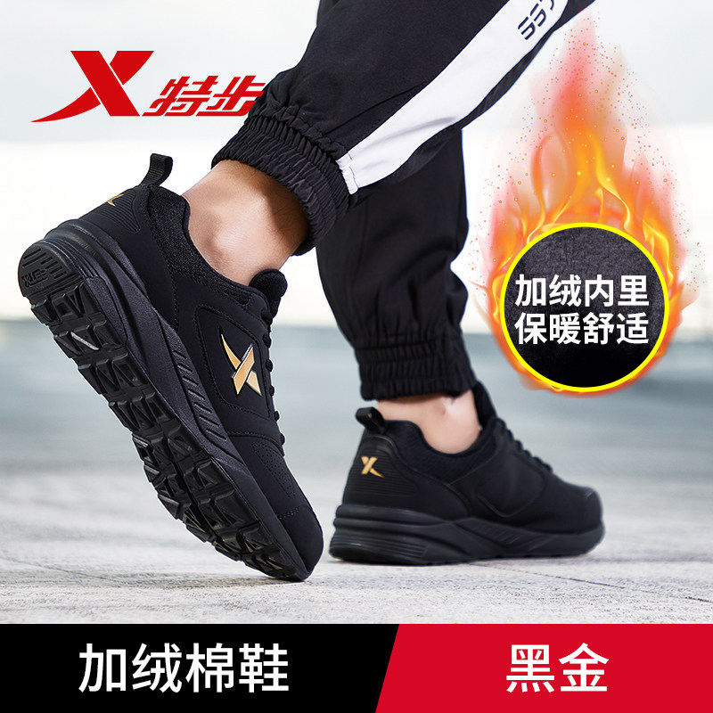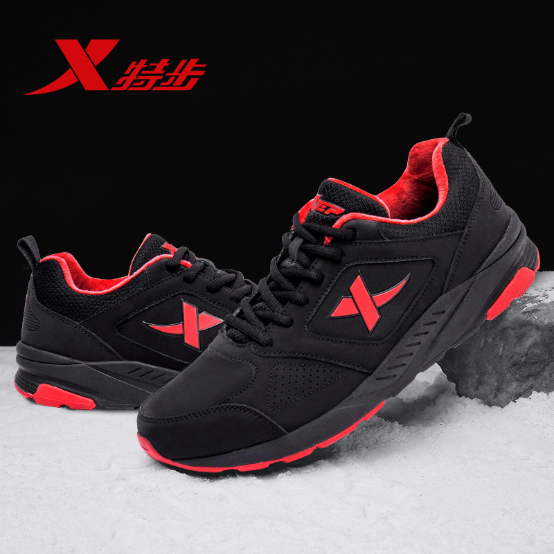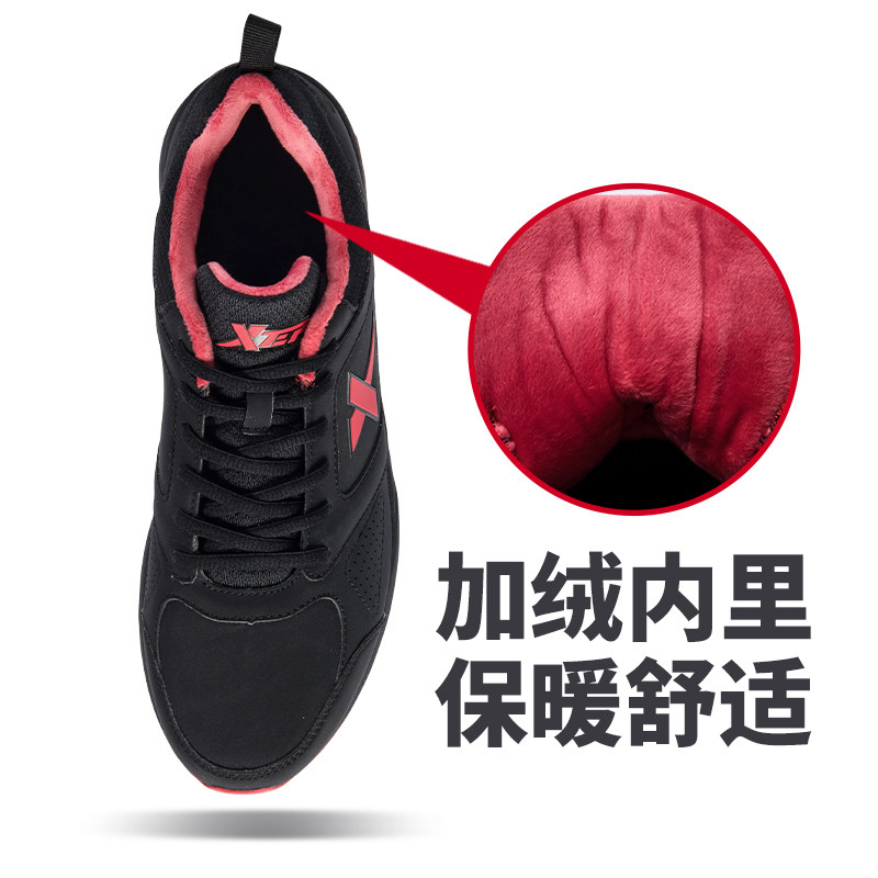 Xtep men's shoes 2022 winter new sports shoes men's leather warm plus velvet cotton shoes leisure travel shoes