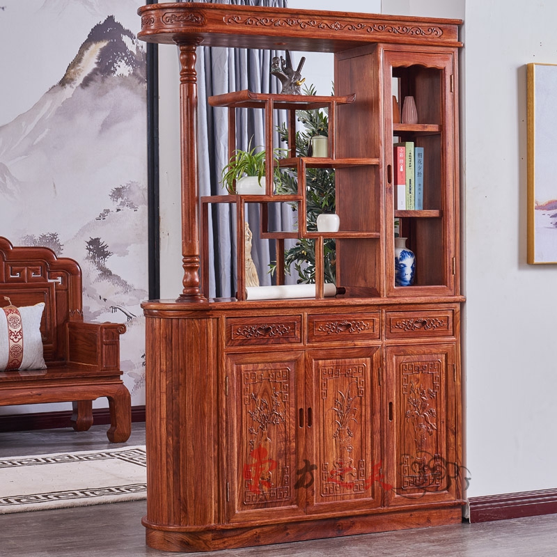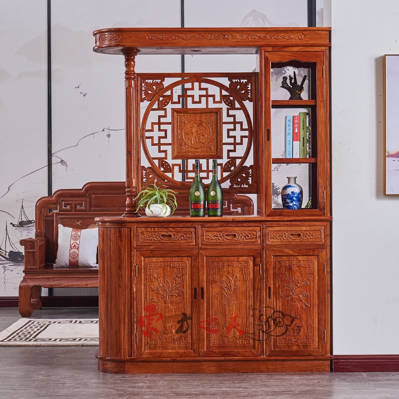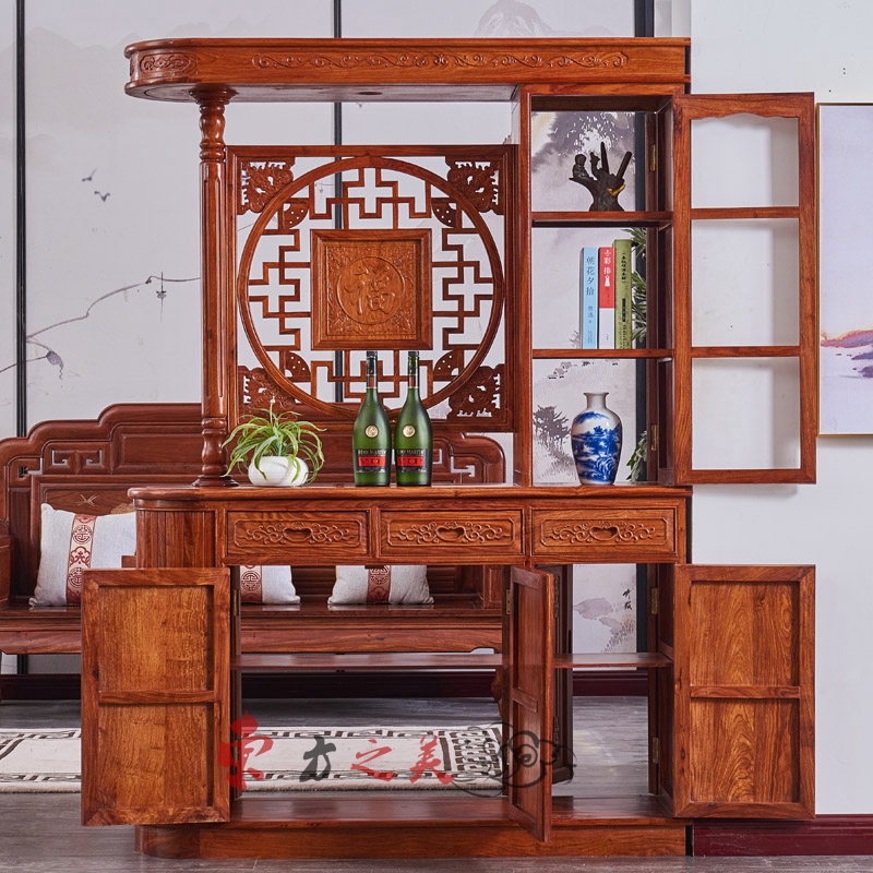 Chinese style red wood hashimi-solid wood Hedgehog Purple Sandalwood Living Room Double Face Carved and separated wine cabinet Pear Wood Septutor's Shoe Cabinet