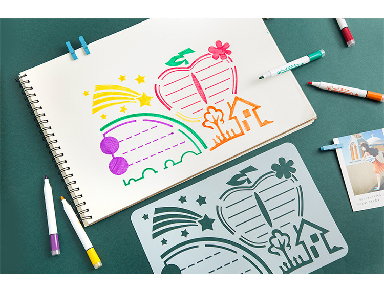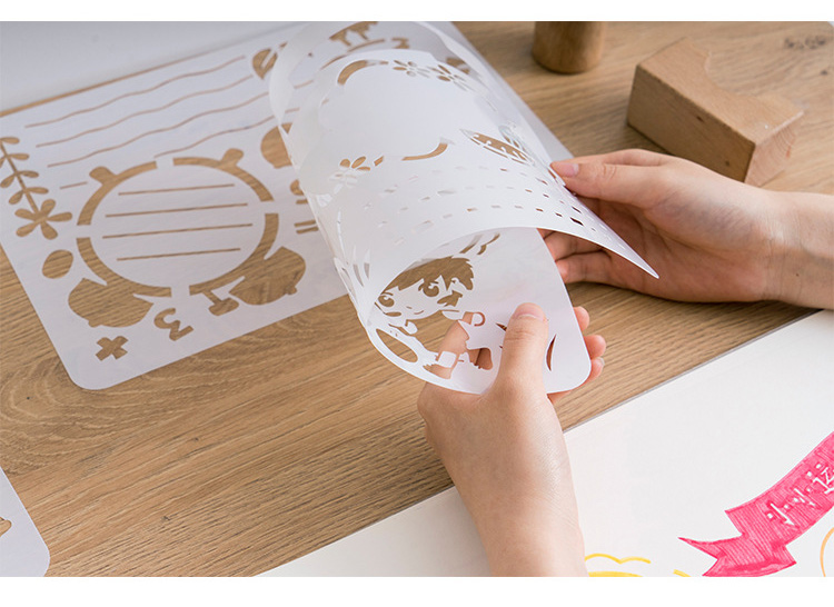 Elementary school students hand-copied newspaper hollow template painting lace tools tabloid artifact painting mold versatile ruler festival set