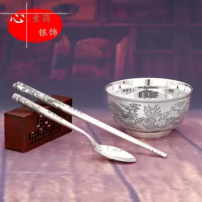 999 cutlery set sterling silver antique carving silver gift baby silver rice bowl silver chopsticks silver spoon birthday