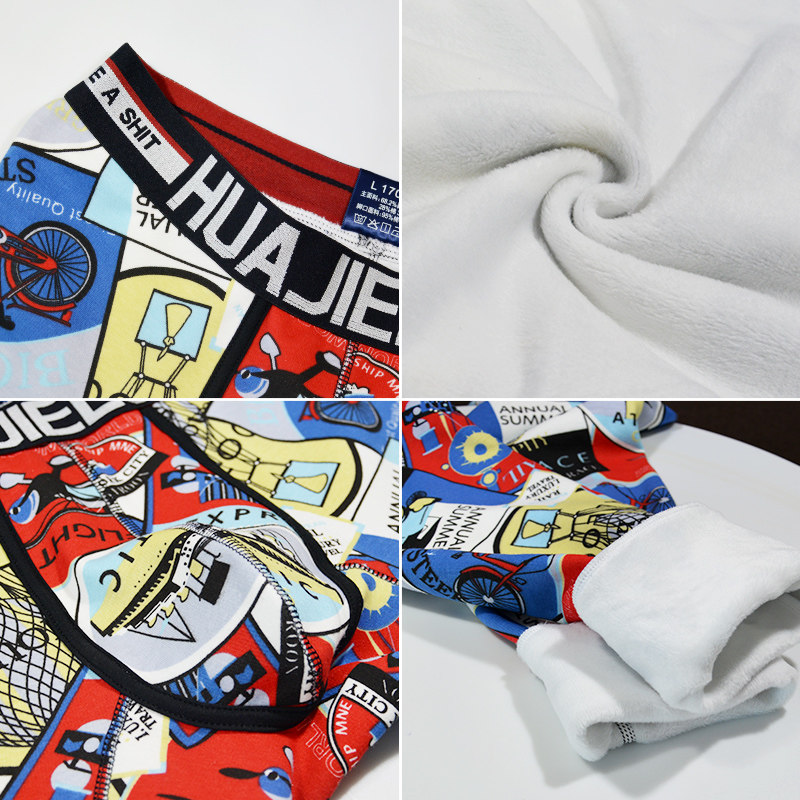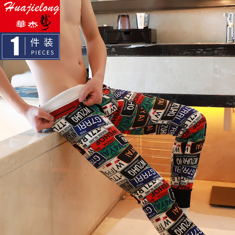 Huajielong men's warm pants plus velvet thick inner pants men's winter sanitary pants slim fit underwear cotton pants sanitary pants fleece pants