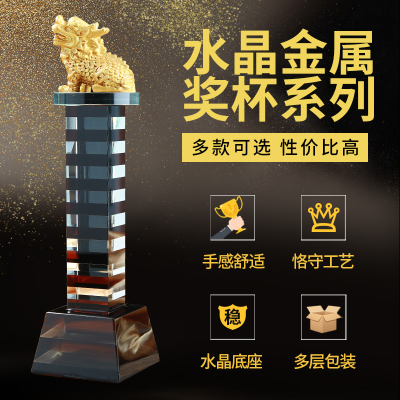 Yuxin crystal metal trophy Kirin Trophy Lucky auspicious ornaments custom spot design memorial