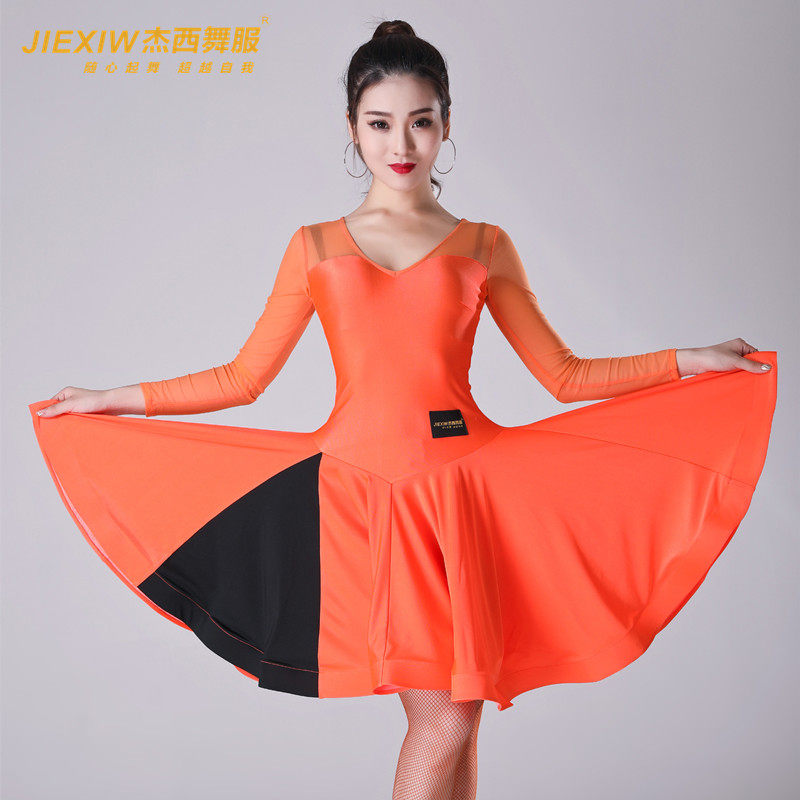 Latin Dance Foreign Dress test suit new adult female V lead three-step performance to the Gitbar race Grand Pendulum Skirt