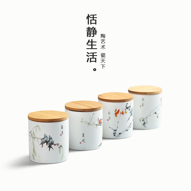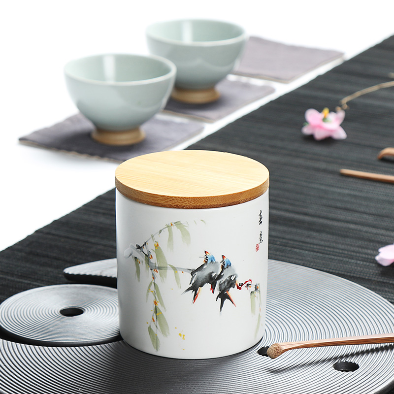 Quiet bamboo cover sealed tea cans ceramic tea box tea warehouse sealing tank Pu - ji cans storage tea cans