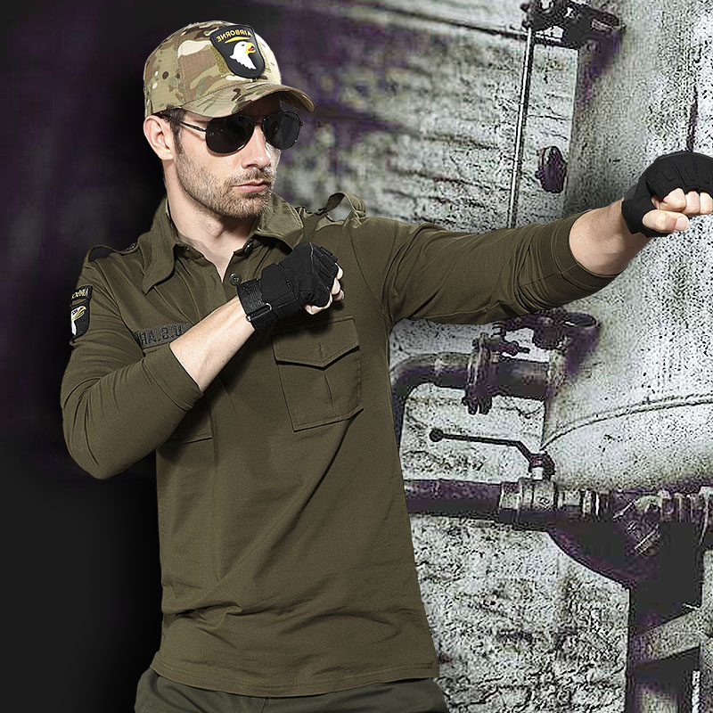 Outdoor leisure military fan men's long-sleeved T-shirt stretch slim black spring and autumn base shirt Fashion frock long-sleeved T-shirt men