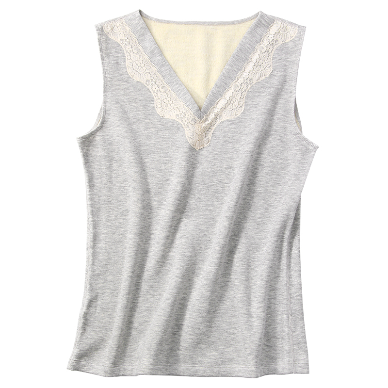 Autumn winter new mulberry silk warm vest woman thickened with velvety tight body sleeveless V collar lace warm to beat bottom waistcoat