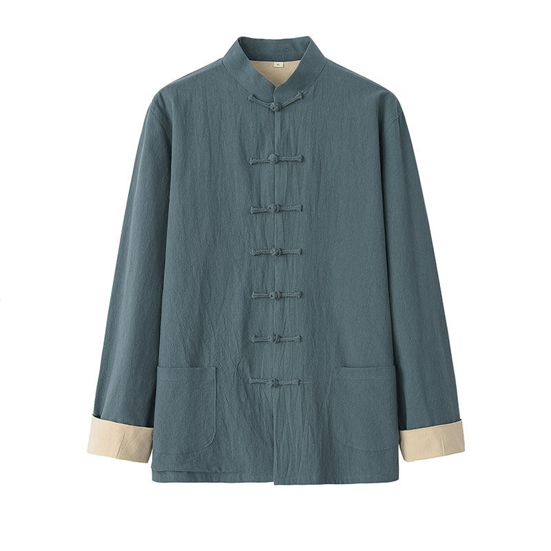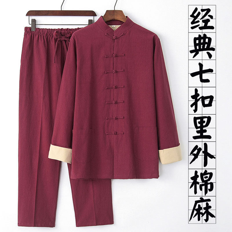 Tang suit for young men Long sleeve suit for the elderly Spring and autumn linen jacket for the elderly Chinese style Han suit for men ancient style lay clothes