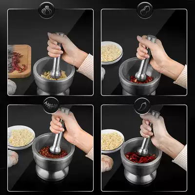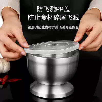 Stainless steel masher Household grinding manual stone mortar ring bowl mashing garlic jar mashing medicine garlic mortar research bowl Garlic artifact