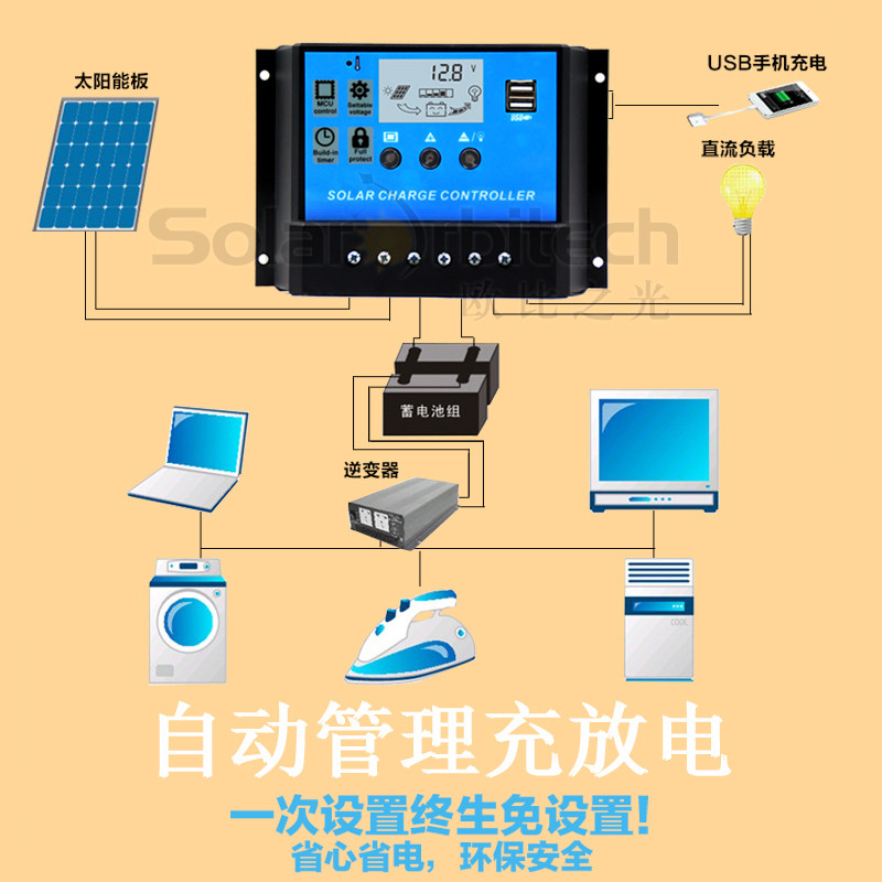 Solar controller 60A charge and discharge flow display lead-acid lithium battery universal controller 12 24V universal