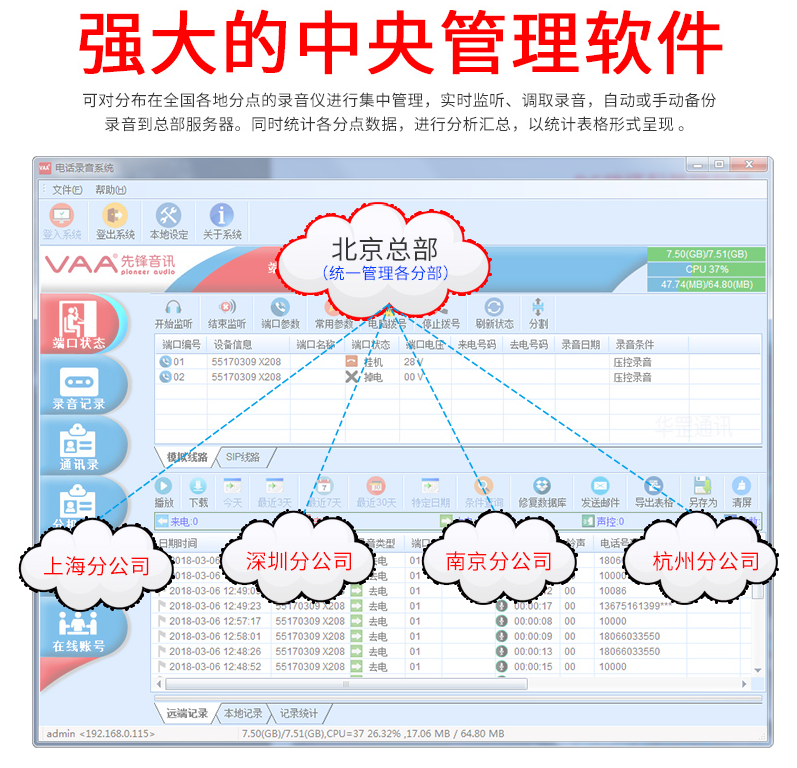 Pioneer VAA-X516 4-way phone recording instrument free of computer independent recording address book with software-Taobao