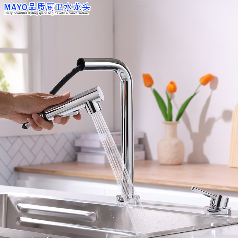 MAYO American and Australian all-copper wire drawing hidden faucet short faucet inner window foldable pull-out faucet