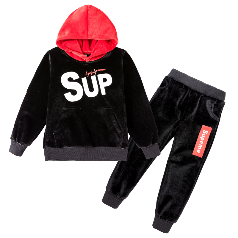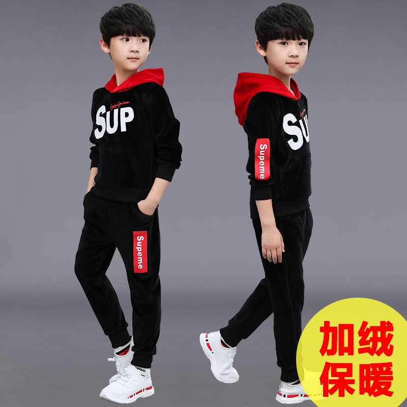 Children's suit Boys ' autumn suit 2021 new autumn and winter in the big child plus velvet boy winter two-piece suit tide clothes