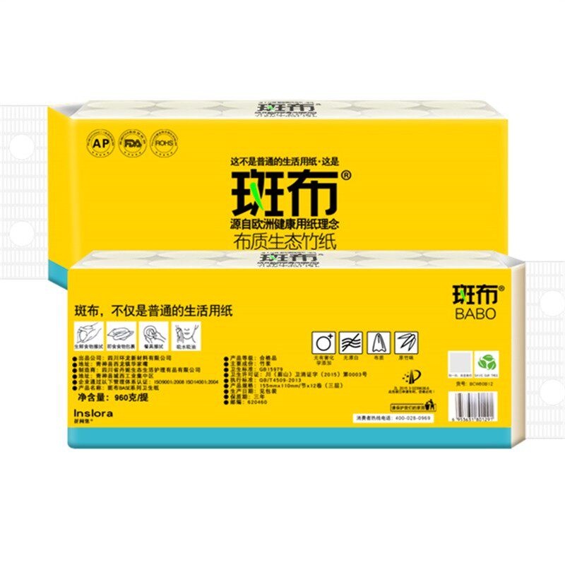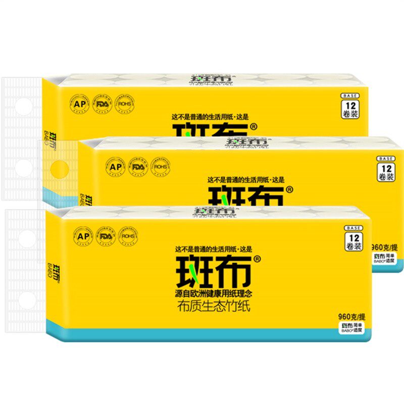 Banbu natural color roll paper 80gx36 roll solid core home sanitary napkin ecological bamboo pulp paper 960g x3