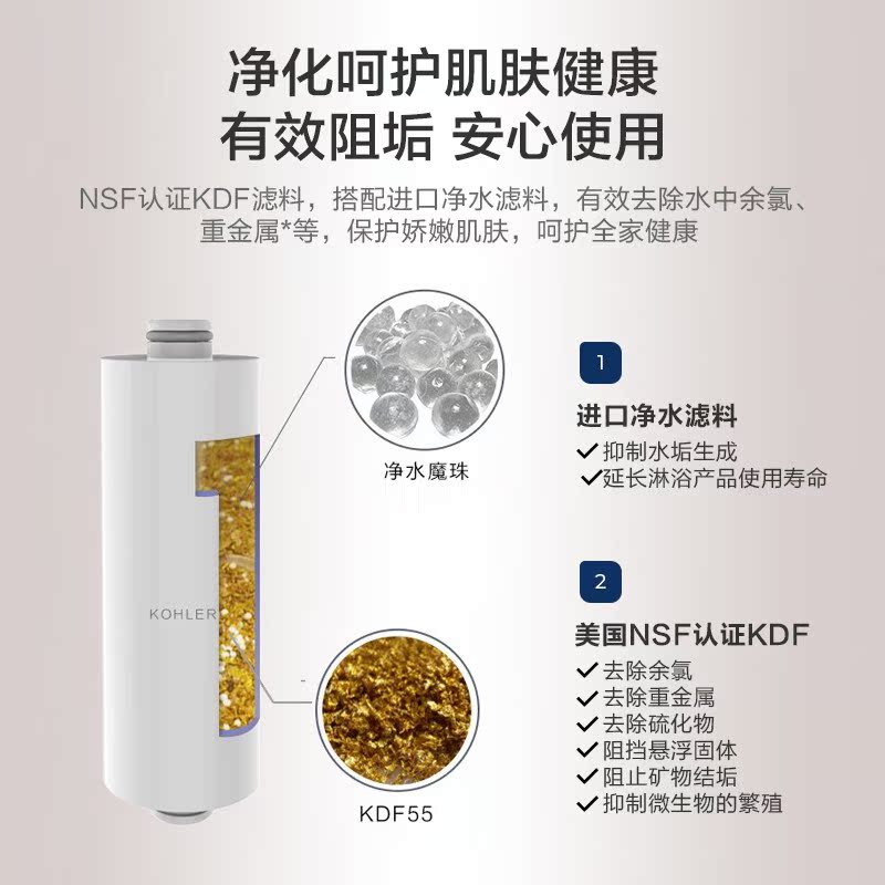Kohler water purifier heart rain shower purifier bath shower filter K-R72914T-CP to remove impurities