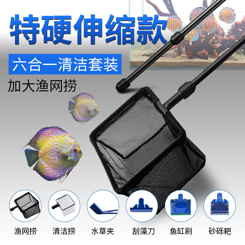 Fish tank brush cleaning long handle telescopic fishing net fishing aquarium fishing net god washing fish tank wall cleaning tool