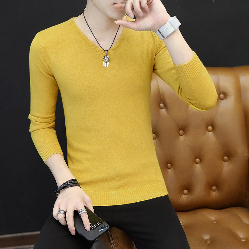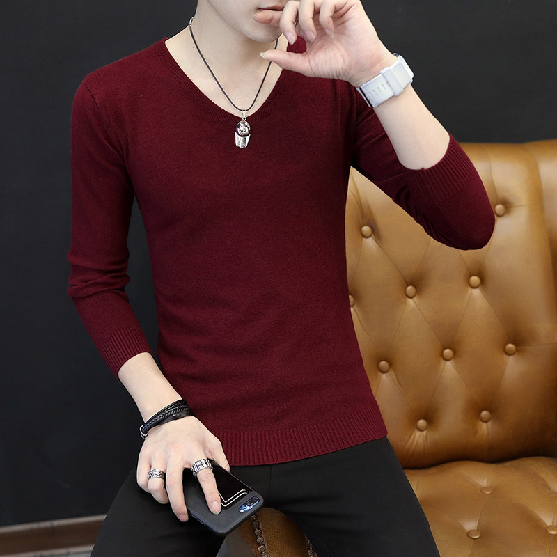 Men's sweater V-collar spring and autumn thin bottoming knitwear Korean version of slim solid color interior fashion Men's thread coat